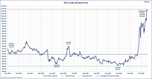 Currently, oil prices are serving as the primary source of volatility. The ongoing war in the middle east, and constraints moving oil through the Strait of Hormuz, which normally sees roughly 20% of the world’s oil supply flow, has created supply constraints for the commodity, and wild price fluctuations. Following talks, a short-term ceasefire sent prices lower, but much remains to be worked out.